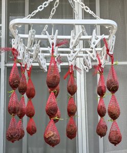 鹿児島別邸の庭に渋柿の古木があります。実は小さいのですが、これが結構おいしい。今年は裏年だったのと、この猛暑で収穫量は昨年の半分くらいだったでしょうか。それでもあおし柿にしたり、吊るし柿にしたり、塩柿に漬けたりといろいろと楽しむことができました。