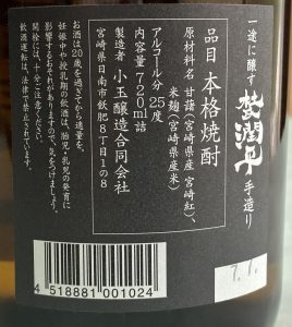 4合・720ml入りが2,000円と良いお値段ですが、なかなかおいしい焼酎でした。
