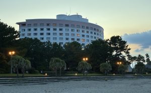 今回、宮崎旅行のお宿は青島にあるANAホリデイイン宮崎です。手ごろなお値段で使い勝手も良く、宮崎に来ると時々使います。 向こうに見えるのが青島。 青島まで1km位。海岸沿いの道はよく整備されています。 今日の夕食は青島駅近くの「ひで丸」さん。ホテルから歩いて出かけます。 刺身定食と天ぷら盛り合わせで一杯やりました。 翌朝食はホテルのビュッフェ。おいしいのがいろいろ揃っていて満足できます。 次回は綾の照葉(てるは)大吊橋です。
