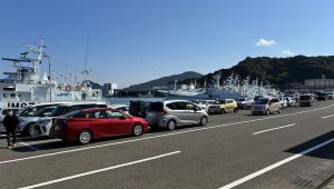 人気のあるグルメスポットで、平日お昼前に行ったのですが、お客さんがいっぱいで15番目くらい。30分程の待ち時間があったので隣の物産館でお土産の海産物等を下見。